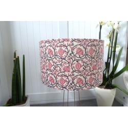 Abat-jour tambour tissu imprimé branches d'arbres sur fond blanc cassé .
