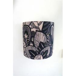 Applique luminaire murale tissu imprimé noir petites fleurs beiges .