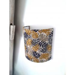 Applique murale tissu ameublement bleu marine motif fougères beiges.