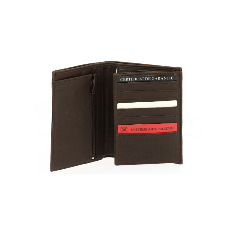Ce portefeuille en cuir vachette au format normal, sera idéal pour ranger tous vos papiers. Vous pourrez y mettre votre carte de paiement, vos cartes de fidélité, carte d'identité, carte de grise du véhicule et toute votre monnaie. De plus, ce portefeuille est équipé du système anti-piratage, brouillant toutes les ondes!