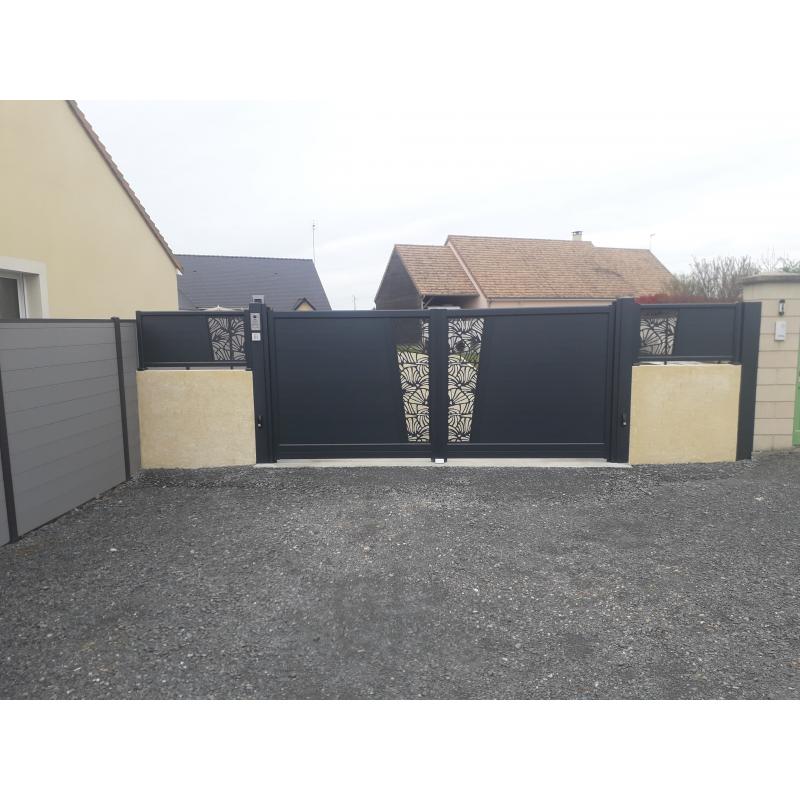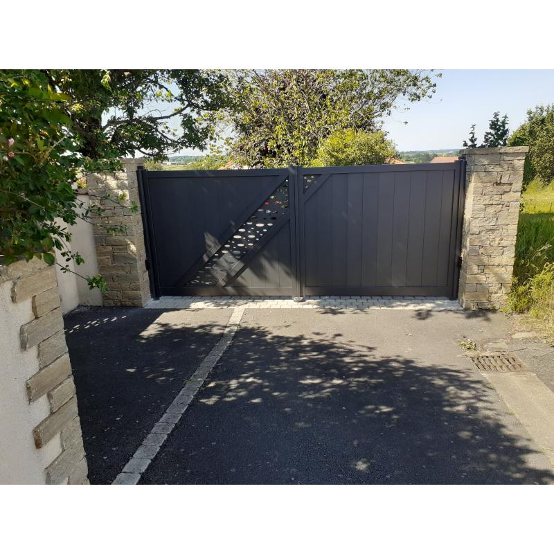 Le portail Andromède apporte un look sobre et design à votre entrée. Il tranche avec un simple ou un double aspect semi-ajouré et rectiligne, dans une structure empreinte de force.