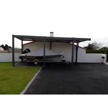 Le Carport est spécialement conçu pour abriter votre terrasse ou une protection pour votre véhicule. L'ossature est composée d'une structure en aluminium et repose sur des poteaux de 150 x 150mm.