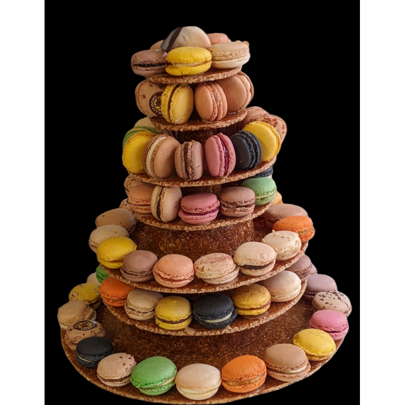 Une pièce montée fabriquée en nougatine, permet de présenter les macarons que nous fabriquons. Vous choisissez vos couleurs, vos parfums ! Un dessert de fête par excellence...