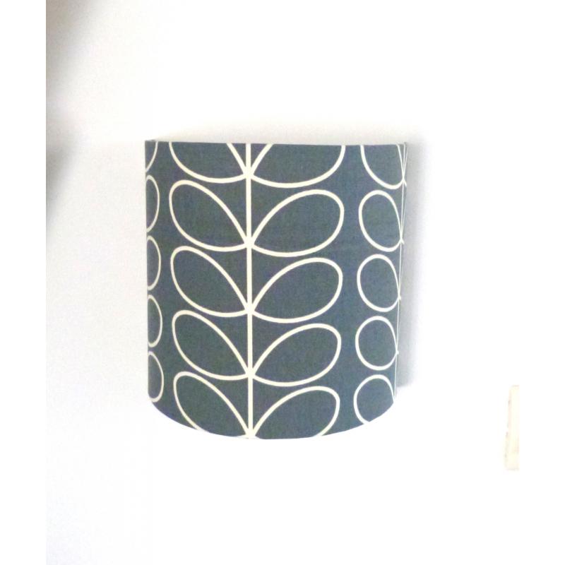 Applique murale en polyphane blanc recouvert d'un tissu d'ameublement gris imprimé feuilles abstrates blanches.