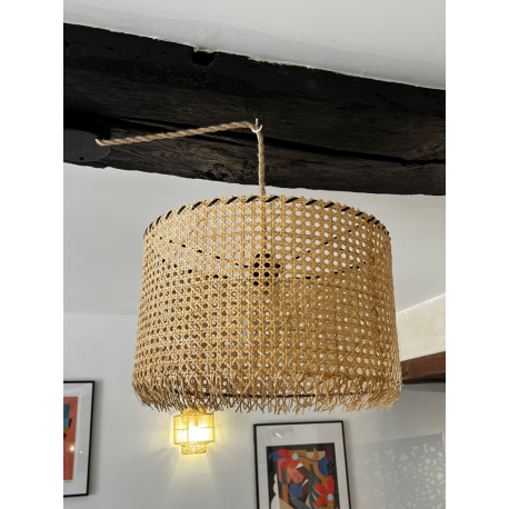 Ce lustre en cannage est une véritable pièce d'artisanat, fabriquée de manière unique et méticuleuse. Chaque détail a été soigneusement travaillé par des artisans qualifiés, conférant à ce lustre un caractère authentique et artisanal inimitable. Cette création faite main témoigne d'un savoir-faire traditionnel et d'une qualité exceptionnelle, ajoutant une dimension spéciale et personnalisée à votre décoration intérieure.