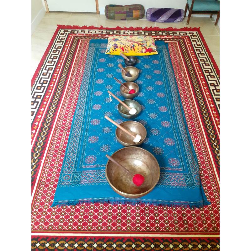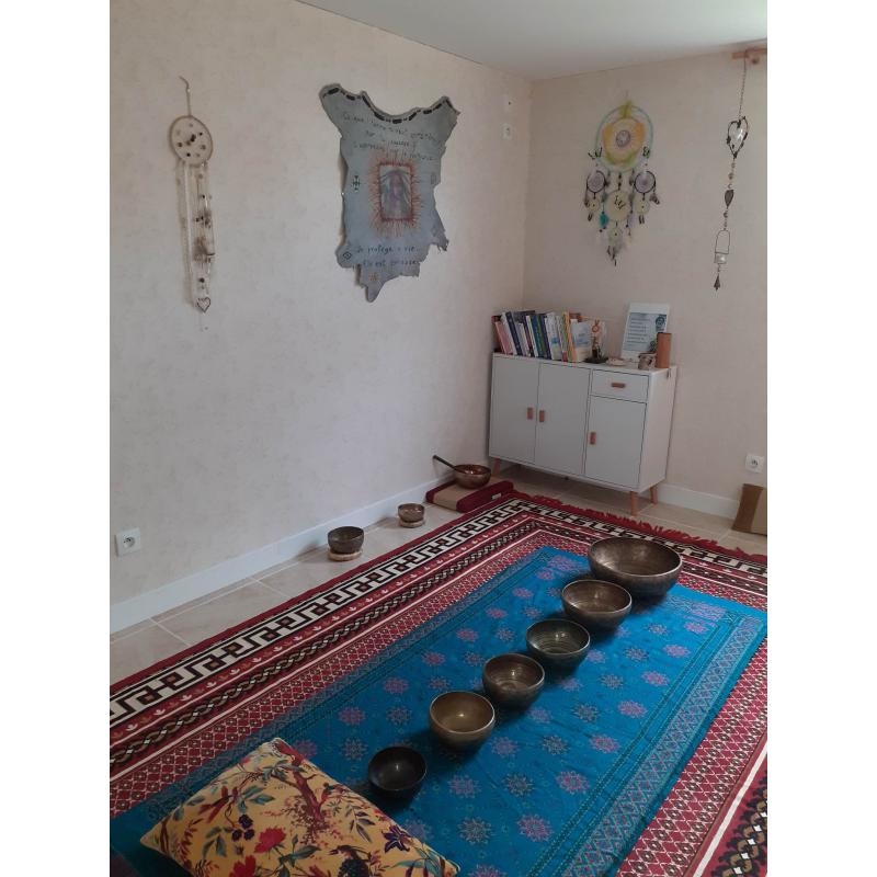 Allongé confortablement, vous vous laissez envelopper par les vibrations des bols chantants, qui résonnent profondément dans le corps et apaisent le mental.