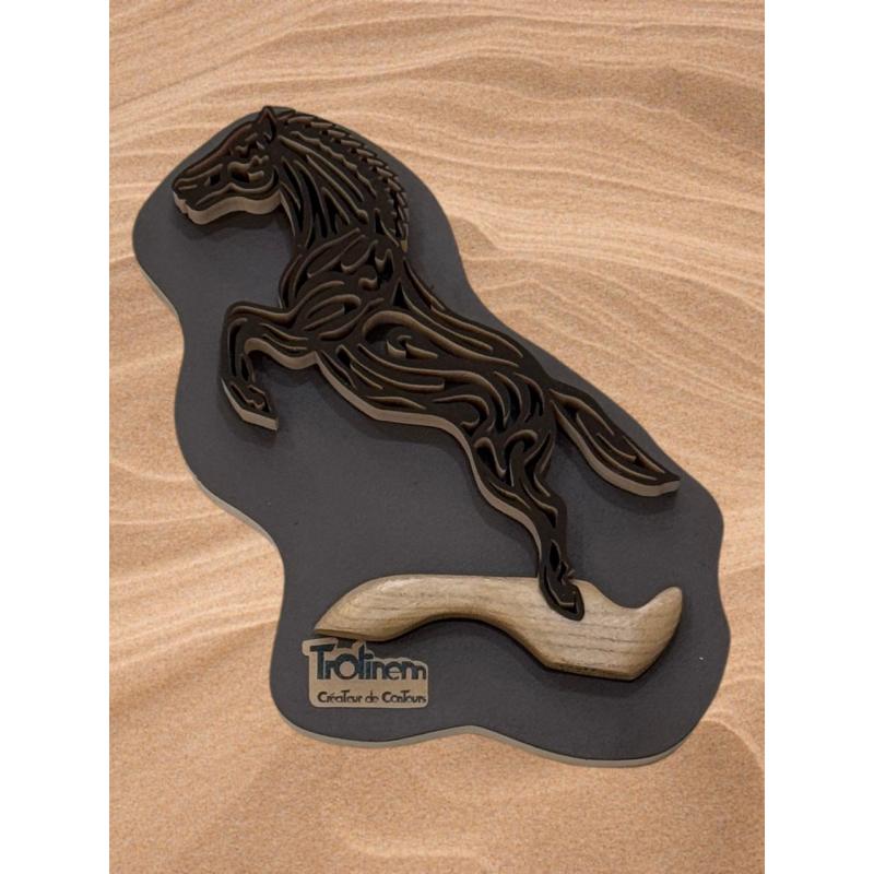 Cheval en bois sur pied, découpé à la scie à chantourner et entièrement réalisé à la main.