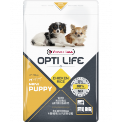 Aliment équilibré pour chiots de petites races - poulet Opti Life Puppy Mini est une formule parfaitement équilibrée pour les petites races (< 10kg) à base de poulet et de riz, spécialement développée pour répondre à tous les besoins nutritionnels de votre chiot en pleine croissance.