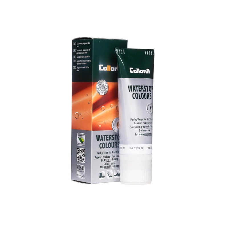 Waterstop Colours est une crème d'entretien colorée avec imperméabilisant qui convient pour tous les cuirs lisses et les matières techniques. Elle nourrit le cuir tout en préservant sa résistance à l'usure et en ravivant sa couleur d'origine.