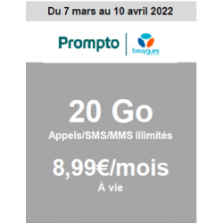Offre exceptionnelle : 20Go Appels/SMS/MMS illimité - 8,99 €/mois à VIE